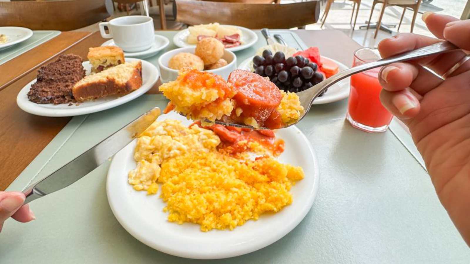 Nosso restaurante oferece uma experiência gastronômica única, com o melhor da cozinha regional e nacional. Comece o seu dia de forma especial com o café da manhã incluso na diária, repleto de sabores afetivos e tradicionais. Pães e bolos caseiros, pratos quentes, tapiocas preparadas na hora, frutas frescas, café expresso, sucos naturais e muito mais esperam por você, das 06h às 10h, e aos finais de semana e feriados até as 10h30.